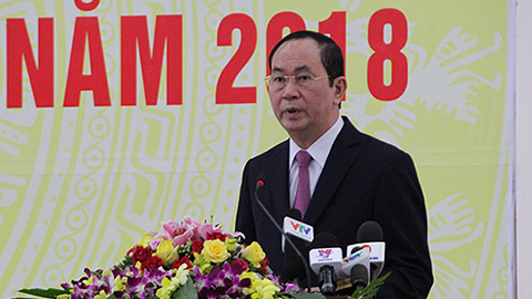 Nhân dịp năm mới 2018 và chuẩn bị đón Tết Nguyên đán Mậu Tuất, Chủ tịch nước Trần Đại Quang gửi lời chúc mừng năm mới tới các cán bộ công an lão thành, các tướng lĩnh, sĩ quan, hạ sĩ quan, chiến sĩ lực lượng Cảnh vệ CAND.