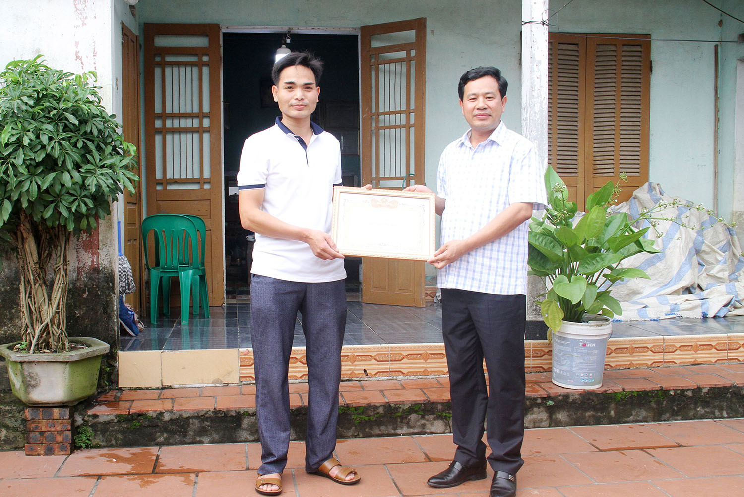 Chủ tịch UBND huyện Tam Đảo trước đó đã tới tận nhà để biểu dương hành động nghĩa hiệp, cứu giúp người trong trường hợp khẩn cấp của anh Đinh Văn Chiến.
