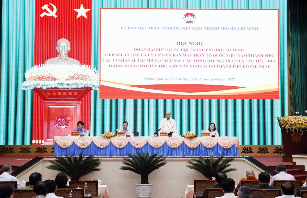 Lắng nghe ý kiến của cử tri, Chủ tịch nước Nguyễn Xuân Phúc đánh giá các cử tri nêu nhiều vấn đề quan trọng của TP.HCM và đất nước, bao trùm cả tôn giáo, giáo dục đào tạo, kinh tế, văn hóa, môi trường, phòng chống tham nhũng. Không chỉ nêu tình hình mà các đại biểu còn nêu nhiều biện pháp, đề xuất cụ thể về giải quyết các nút thắt cho tình tình trạng quá tải sân bay Tân Sơn Nhất hạ tầng TP.HCM; khắc phục tình trạng thiếu thuốc và vật tư y tế tại các bệnh viện hiện nay; vấn đề chuyển đổi số; phát triển năng lượng sạch; giải pháp phát triển văn học nghệ thuật tại TP.HCM; phát huy vai trò của đội ngũ trí thức Thành phố để phát triển; nâng cao vai trò giám sát và phản biện xã hội của MTTQ các cấp…