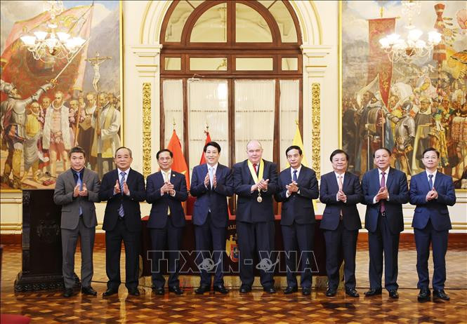 Vui mừng dẫn đầu đoàn đại biểu cấp cao Việt Nam lần đầu tiên đến với Thủ đô Lima tươi đẹp, Chủ tịch nước chia sẻ tuy thời gian ở thăm Lima chưa dài nhưng đoàn đại biểu Việt Nam nói chung và cá nhân Chủ tịch nước nói riêng hết sức ấn tượng với bề dày lịch sử và văn hóa độc đáo của thành phố Lima.