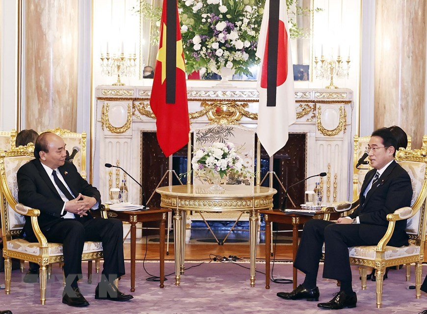Chủ tịch nước Nguyễn Xuân Phúc đề nghị tiếp tục thúc đẩy quan hệ Việt Nam - Nhật Bản phát triển toàn diện và thực chất hơn nữa. Thủ tướng Kishida nhất trí sẽ nỗ lực để đưa quan hệ Việt Nam - Nhật Bản phát triển lên tầm cao mới.