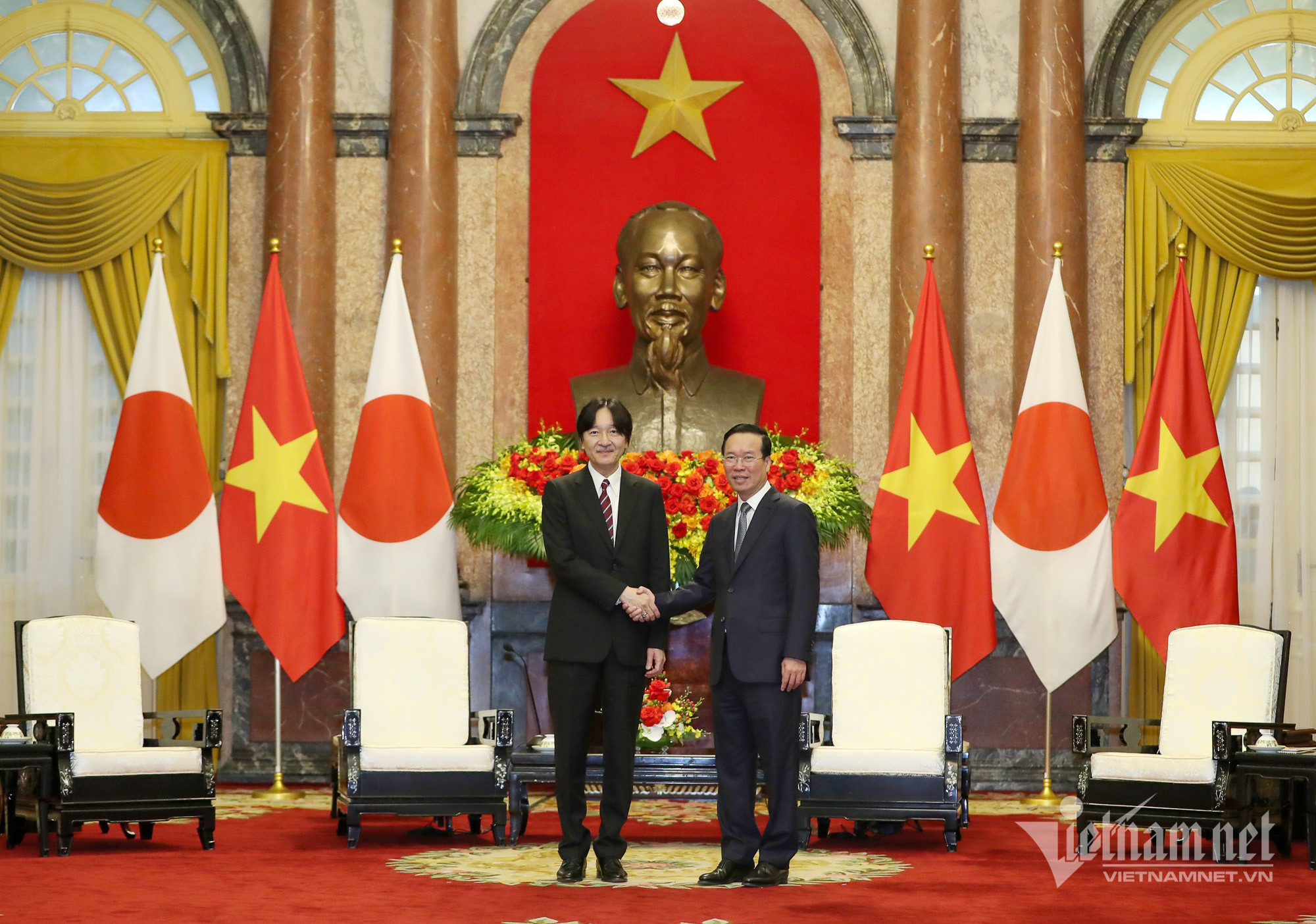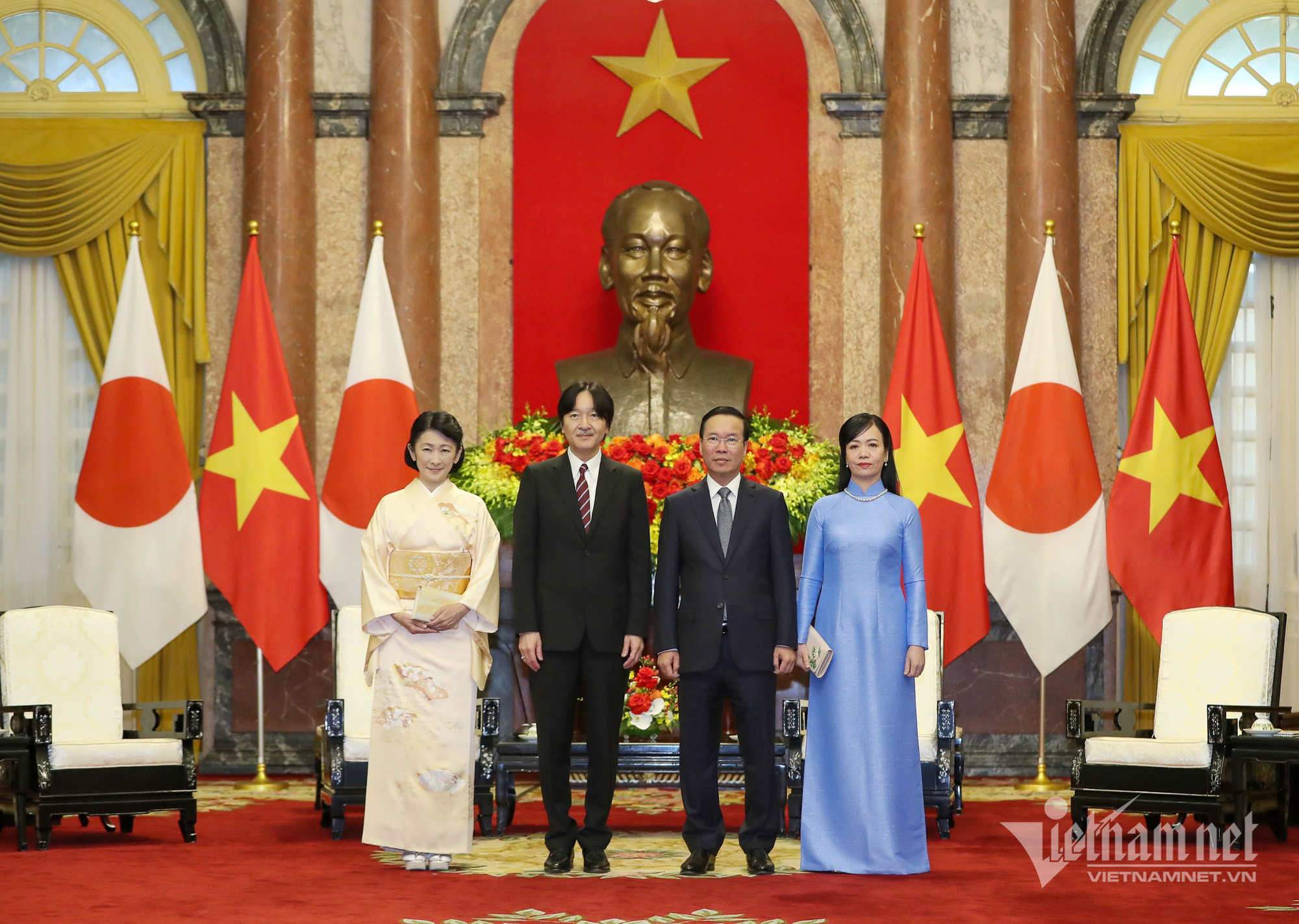 Hoàng Thái tử Akishino và Công nương trân trọng chuyển thông điệp của Nhà vua Naruhito và Hoàng hậu Nhật Bản tới Chủ tịch nước Võ Văn Thưởng và phu nhân. Qua thông điệp, Nhà vua gửi lời thăm hỏi và chúc sức khỏe tới Chủ tịch nước và phu nhân, cho biết vẫn lưu giữ những kỷ niệm về chuyến thăm Việt Nam trước đây...