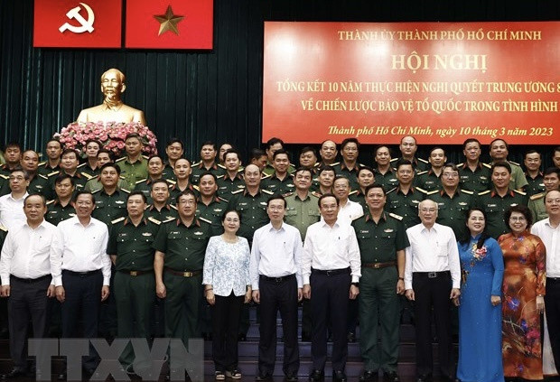 Mười năm qua, các cấp ủy, tổ chức Đảng, chính quyền, Mặt trận Tổ quốc và các tổ chức chính trị xã hội của Thành phố Hồ Chí Minh đã triển khai thực hiện nghiêm túc Nghị quyết Trung ương 8 Khóa XI và các chủ trương, đường lối của Đảng về bảo vệ Tổ quốc.