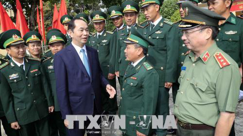 Sáng nay, tại Hà Nội, Chủ tịch nước Trần Đại Quang và đoàn công tác đã đến thăm, làm việc với Bộ Tư lệnh Bộ đội Biên phòng.
