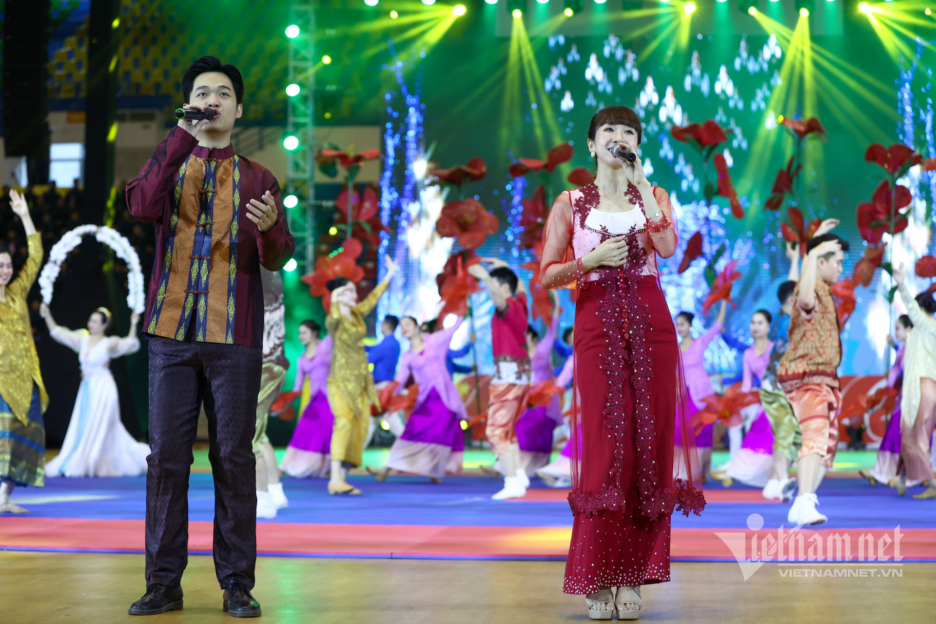 Ngay từ đầu giờ chiều, tại Cung thể thao Quần Ngựa, đã có hàng trăm người ngồi trên các khán đài với quốc kỳ Việt Nam và Indonesia, chờ đón xem màn biểu diễn.