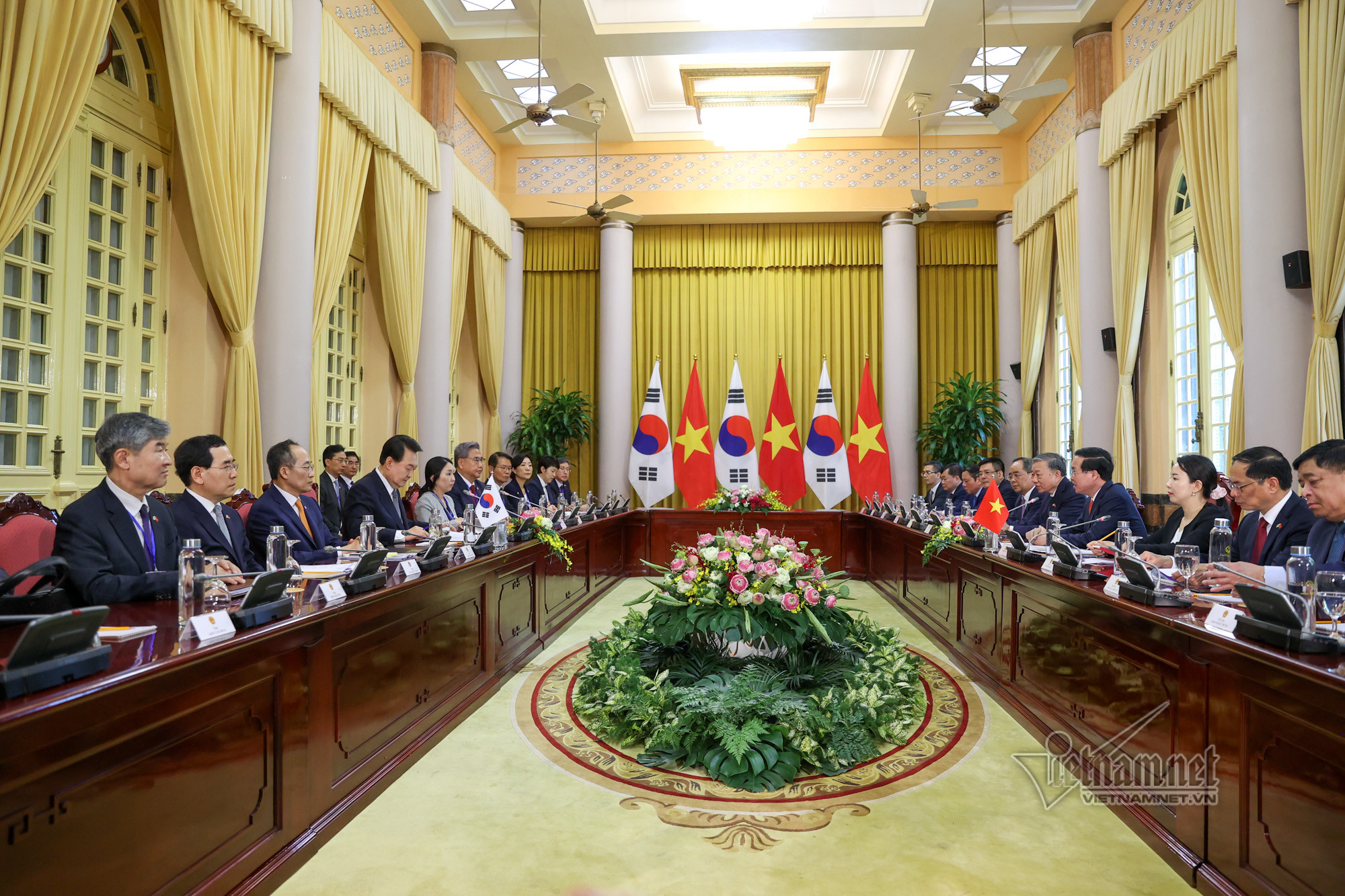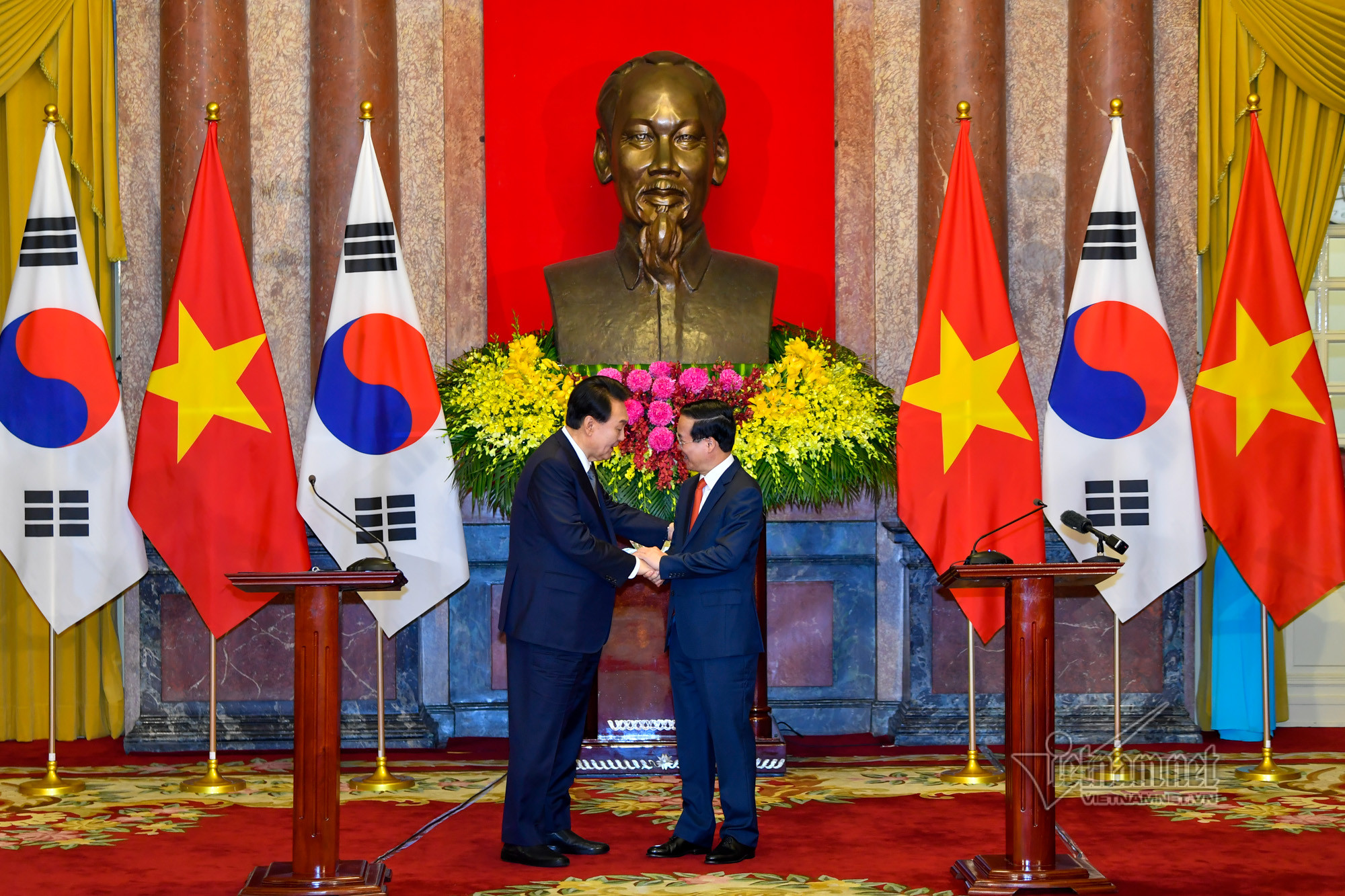 "Ngày hôm nay, hai bên đã đưa ra chương trình hành động nhằm đánh giá hợp tác và nhất trí triển khai thực chất quan hệ Hàn Quốc - Việt Nam", Tổng thống Yoon Suk-yeol chia sẻ.