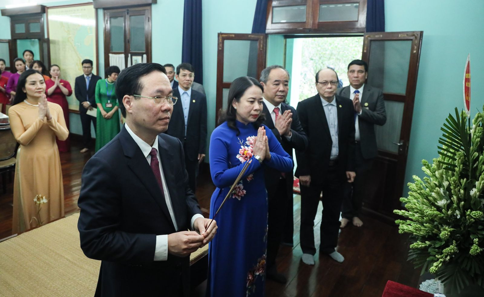 Cũng trong chiều 2/3, Chủ tịch nước Võ Văn Thưởng đã dâng hương tưởng nhớ Chủ tịch Hồ Chí Minh tại nhà 67 trong Khu di tích Chủ tịch Hồ Chí Minh ở Phủ Chủ tịch.