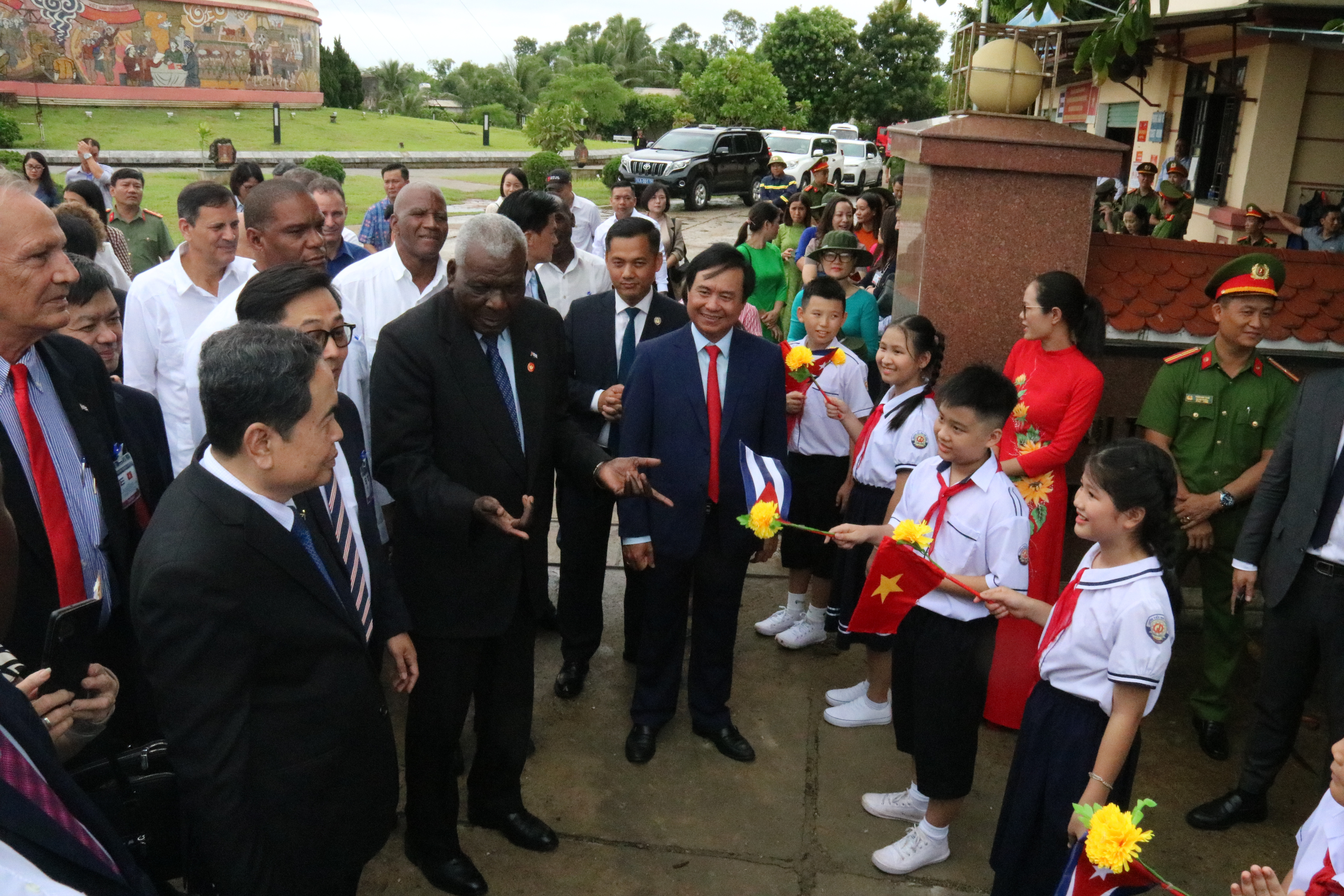 Trò chuyện với các cháu học sinh tại kỳ đài Hiền Lương, Chủ tịch Quốc hội Chính quyền Nhân dân Cuba đã ôn lại kỷ niệm về chuyến thăm của Lãnh tụ Cuba Fidel Castro đến vùng giải phóng Quảng Trị, thăm nhiều nơi khi vùng đất này vẫn còn vương mùi thuốc súng và đầy rẫy đạn bom.