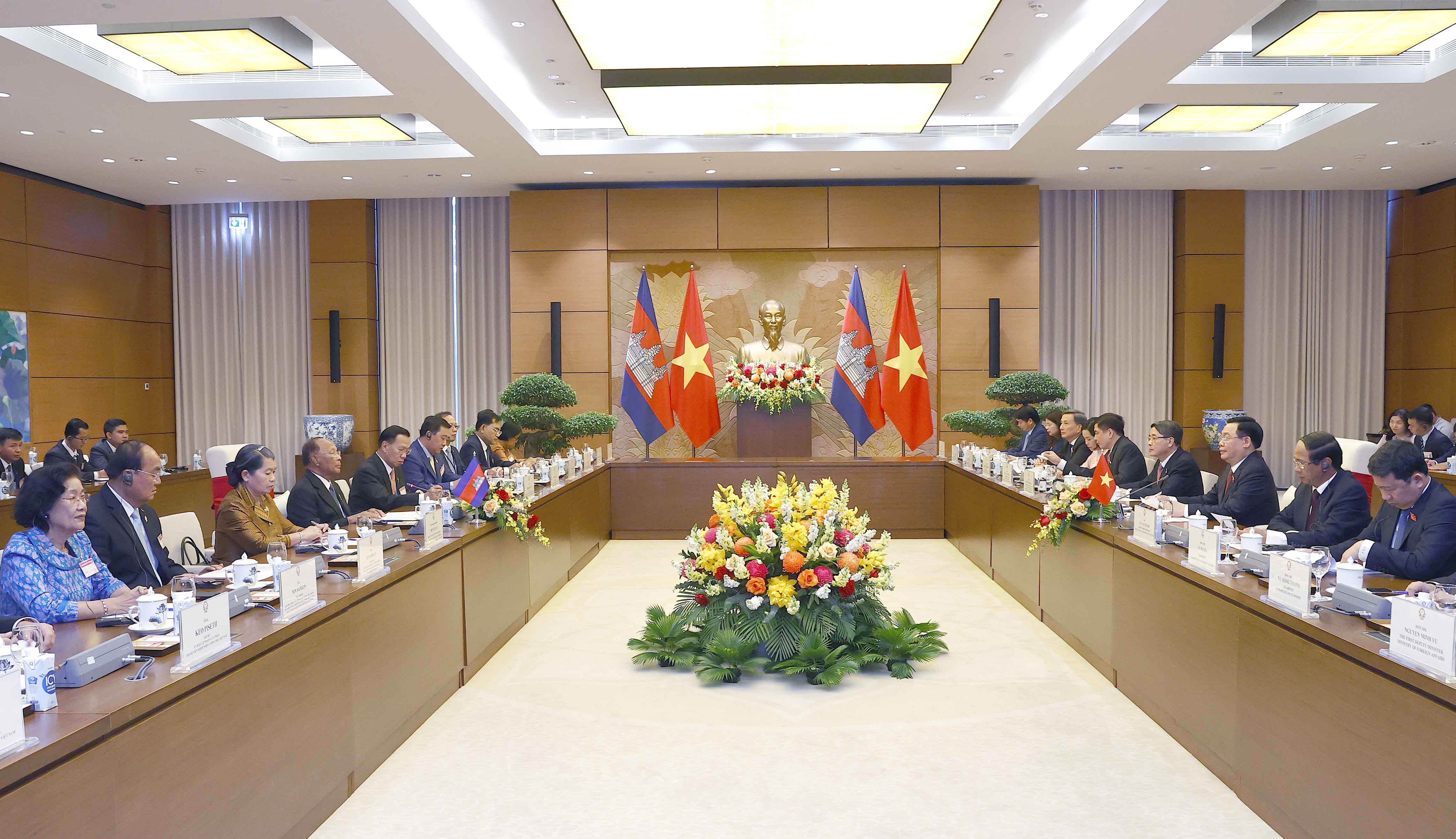 Chủ tịch Quốc hội Campuchia nêu rõ, Chính phủ Campuchia rất nỗ lực giải quyết vấn đề này; khẳng định Campuchia bảo vệ quyền và lợi ích hợp pháp của người Việt Nam đang sinh sống tại Campuchia, ủng hộ và tạo điều kiện thuận lợi cho doanh nghiệp Việt Nam hoạt động hợp pháp tại Campuchia.