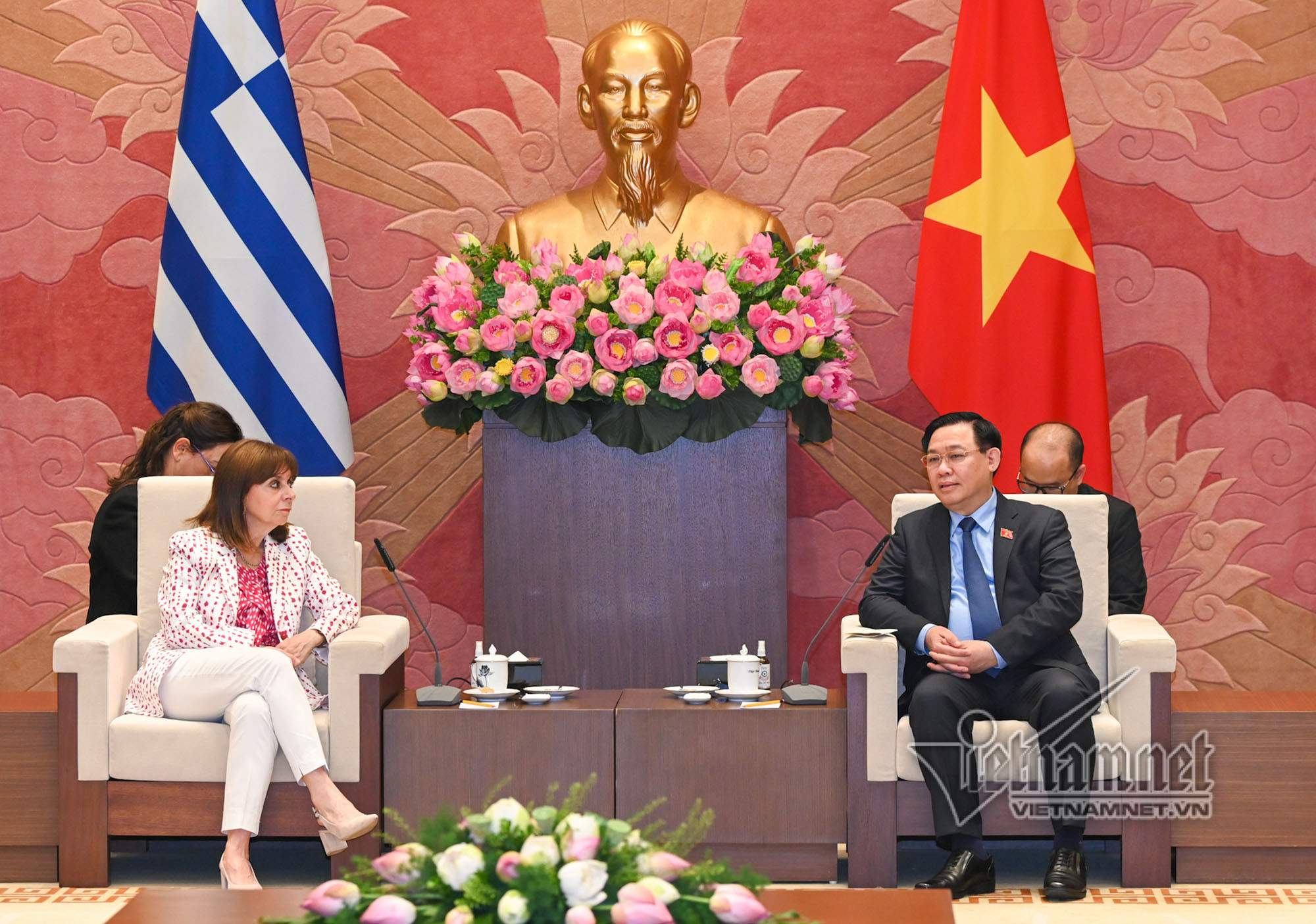 Qua Tổng thống Katerina Sakellaropoulou, Chủ tịch Quốc hội chuyển lời thăm và lời mời Chủ tịch Quốc hội Hy Lạp Konstantinos Tasoulas sang thăm Việt Nam.