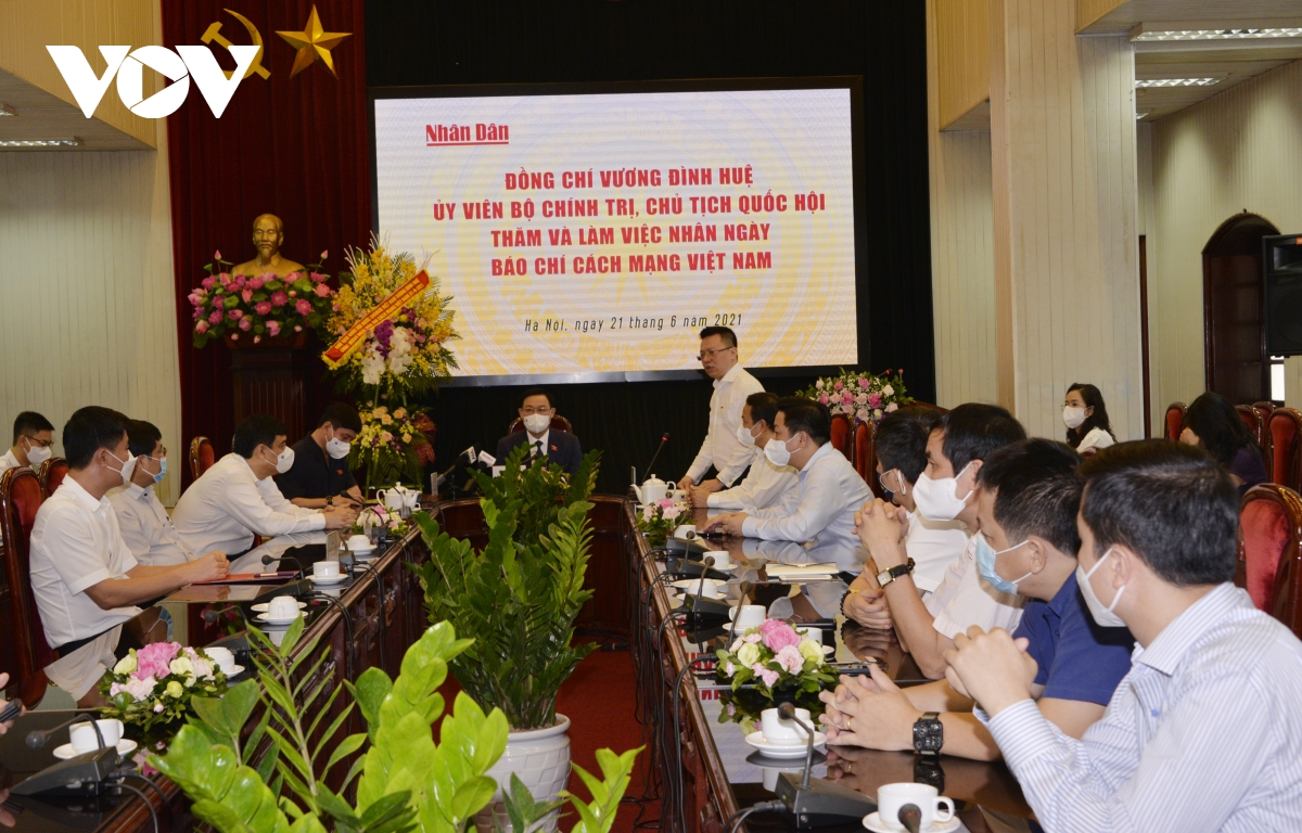 Thay mặt Quốc hội, Ủy ban Thường vụ Quốc hội, Chủ tịch Quốc hội Vương Đình Huệ bày tỏ vui mừng đến thăm, chúc mừng tập thể những người làm báo Nhân Dân nhân kỷ niệm 96 năm Ngày báo chí cách mạng Việt Nam; khẳng định, Báo Nhân Dân là tờ báo hàng đầu của nền báo chí cách mạng Việt Nam. Trong chặng đường 70 năm qua, nhất là thời gian gần đây, Báo Nhân Dân đã phát triển toàn diện, những ấn phẩm Báo Nhân Dân các loại hình đều có những bước phát triển vượt bậc.