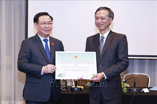 Trong không khí đầm ấm và thân tình, sau khi lắng nghe các ý kiến, phát biểu tại cuộc gặp, Chủ tịch Quốc hội Vương Đình Huệ bày tỏ vui mừng gặp cộng đồng bà con người Việt tại Australia và cán bộ, nhân viên Đại sứ quán; cho biết, chuyến thăm này là chuyến thăm chính thức đầu tiên của Lãnh đạo cấp cao Việt Nam tới Australia sau khi tiến hành Đại hội đại biểu toàn quốc lần thứ XIII của Đảng, cũng là lãnh đạo cấp cao nước ngoài đầu tiên thăm chính thức sau khi Australia thành lập Chính phủ liên bang mới.