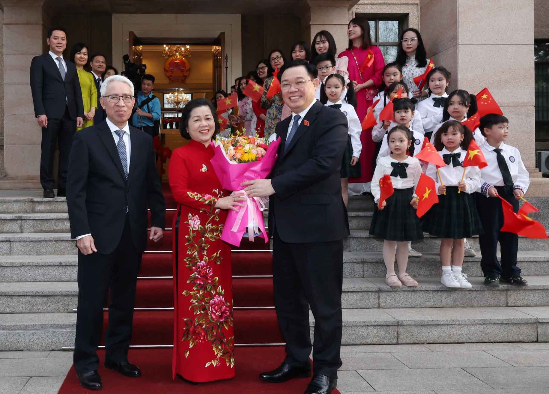 Chủ tịch Quốc hội ghi nhận và biểu dương những đóng góp quan trọng của Đại sứ quán Việt Nam và cộng đồng người Việt Nam tại Trung Quốc đối với quan hệ hai nước cũng như trong công tác bảo hộ công dân. Chủ tịch Quốc hội mong muốn Đại sứ quán Việt Nam tiếp tục triển khai và thúc đẩy triển khai hiệu quả hơn nữa các cơ chế hợp tác hiện có giữa hai nước; chú trọng nghiên cứu kinh nghiệm của Trung Quốc trong xây dựng Đảng, xây dựng thể chế, quản trị đất nước, phòng, chống tham nhũng, quản trị doanh nghiệp... Cùng với đó, cần phối hợp chặt chẽ với phía Trung Quốc, hai bên cùng nhau nghiên cứu, đề xuất các cơ chế hợp tác mới phù hợp với điều kiện cụ thể của hai nước, mang lại lợi ích cho cả hai nước, phù hợp với luật pháp quốc tế và Hiến chương Liên Hợp Quốc.