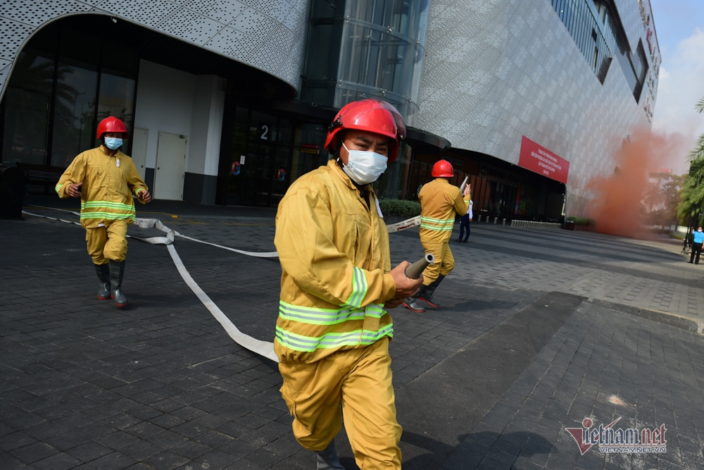 Buổi diễn tập giúp cán bộ, nhân viên nâng cao kỹ năng phòng cháy, chữa cháy theo phương châm "4 tại chỗ": Chỉ huy tại chỗ, lực lượng tại chỗ, phương tiện tại chỗ và hậu cần tại chỗ.