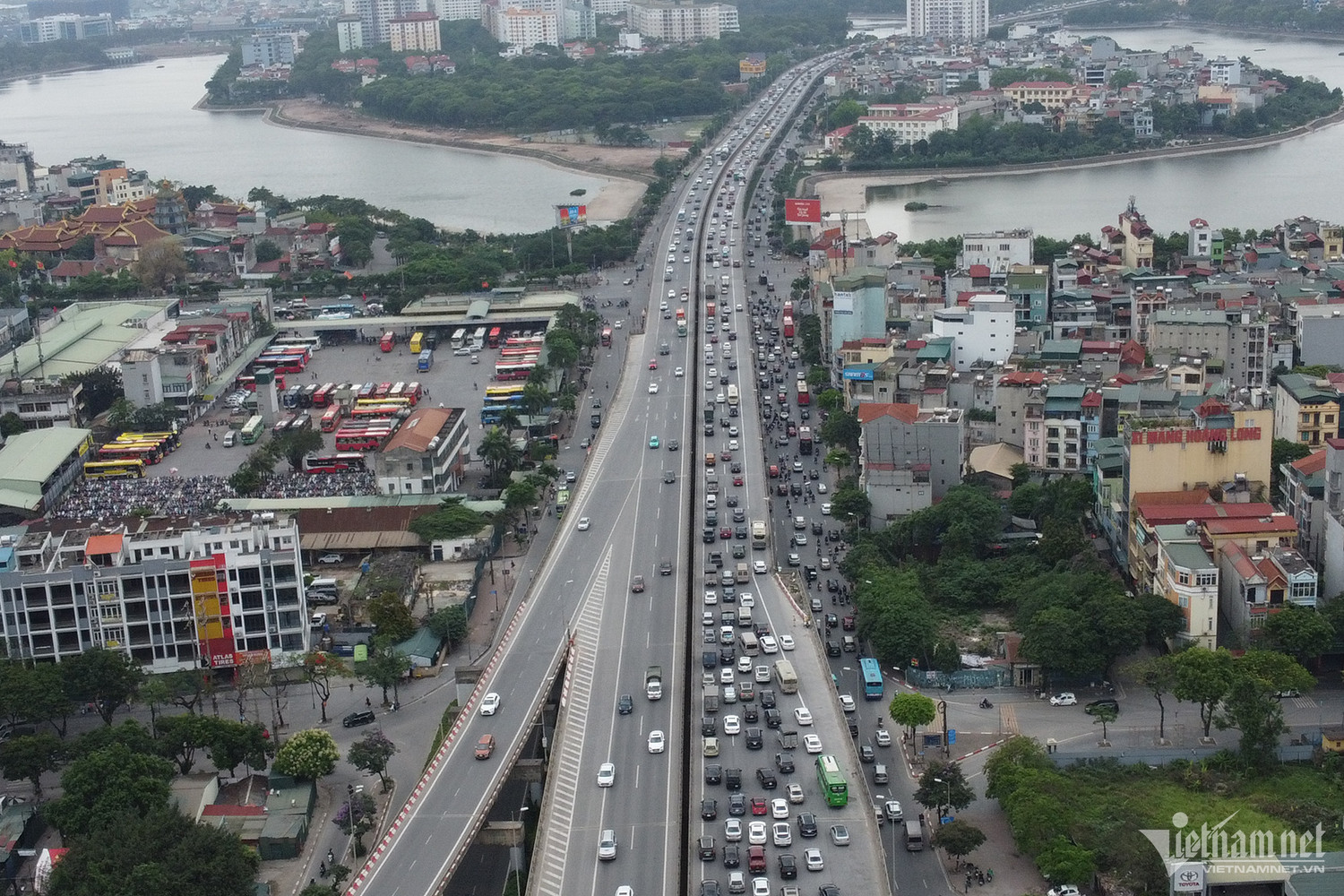 Đến 18h30 cùng ngày, lưu lượng phương tiện dồn về “nút thắt” cuối cao tốc Pháp Vân – Cầu Giẽ và lối lên Vành đai 3 trên cao vẫn đông. Tình trạng ùn tắc tại điểm cao tốc kéo dài khoảng 3km.