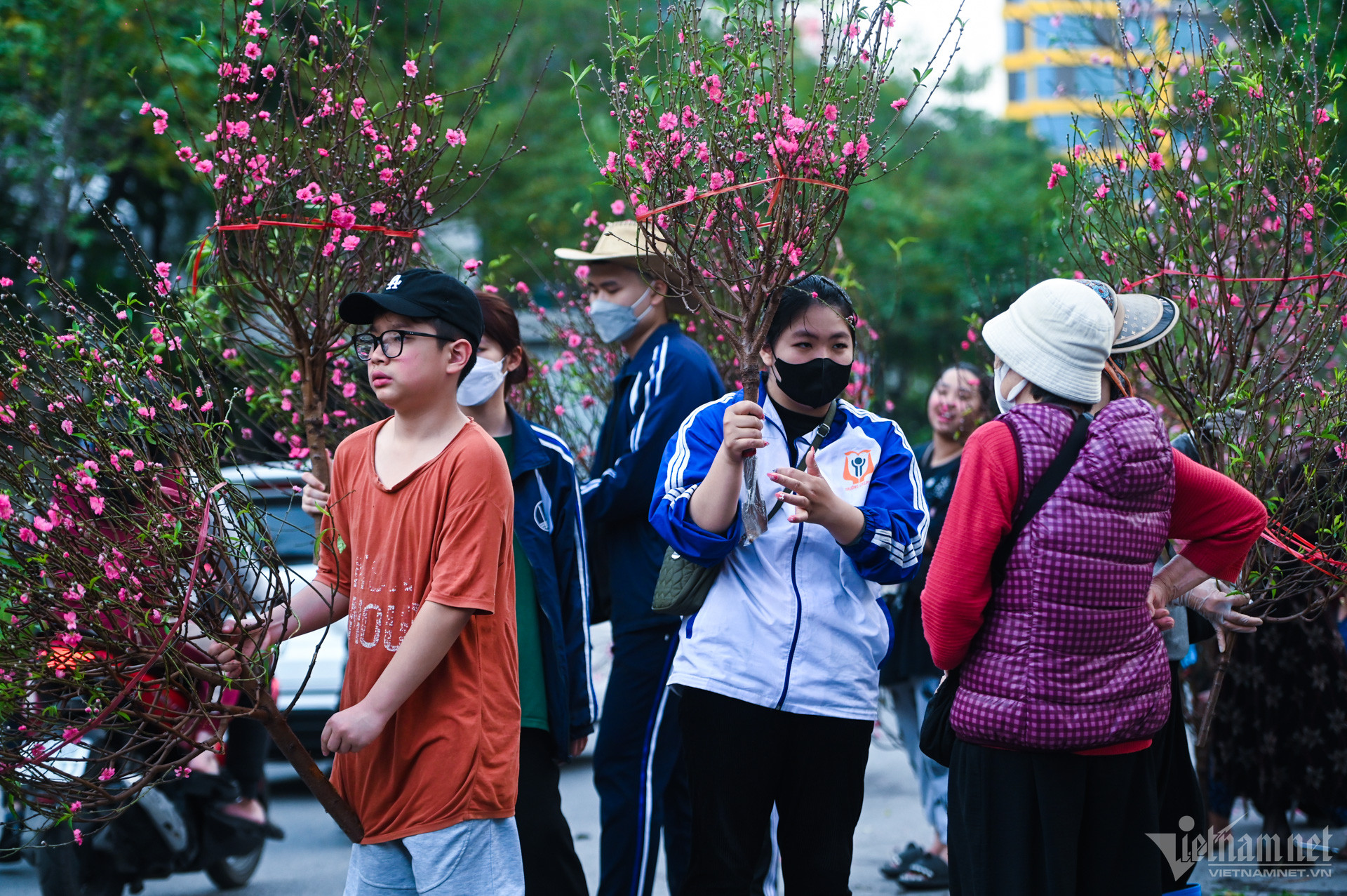 Khung cảnh không mấy "thuận mua vừa bán" khi những cành đào liên tục bị ép giá, còn tiểu thương thì không muốn bán rẻ vì sợ lỗ.