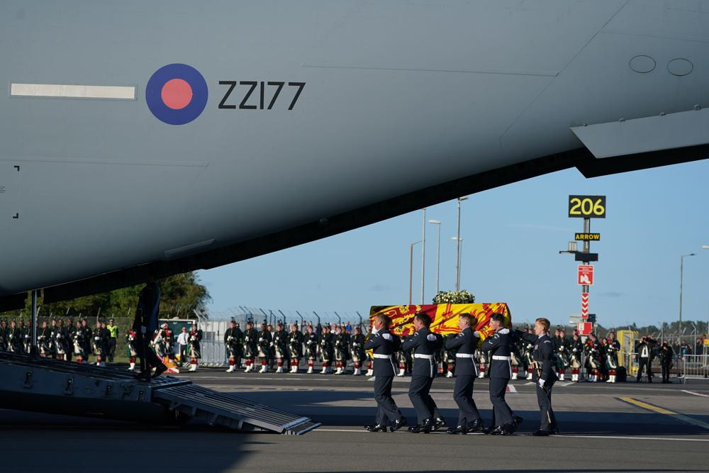 Theo hãng tin AP, chiếc chuyên cơ C-17 Globemaster chở theo linh cữu của Nữ hoàng Elizabeth II đã hạ cánh xuống sân bay quân sự Northolt nằm ở phía tây London chỉ vài giờ sau khi cất cánh từ thành phố Edinburgh, Scotland. Thủ tướng Anh Liz Truss, Bộ trưởng Quốc phòng Ben Wallace cùng đoàn nghi lễ quân đội đã có mặt ở sân bay Northolt để đón linh cữu.