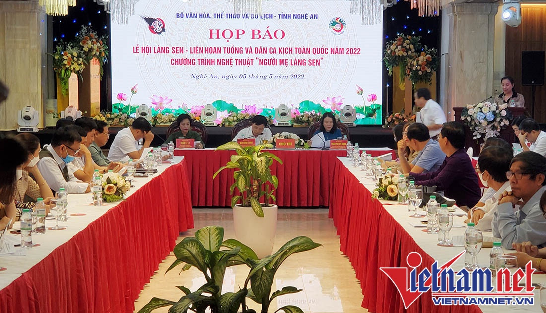 Chiều nay (5/6), Bộ Văn hoá, Thể thao và Du lịch cùng UBND tỉnh Nghệ An tổ chức họp báo chuẩn bị tổ chức chương trình “Lễ hội Làng Sen – Liên hoan Tuồng và Dân ca kịch toàn quốc năm 2022”; Chương trình nghệ thuật “Người Mẹ Làng Sen”.