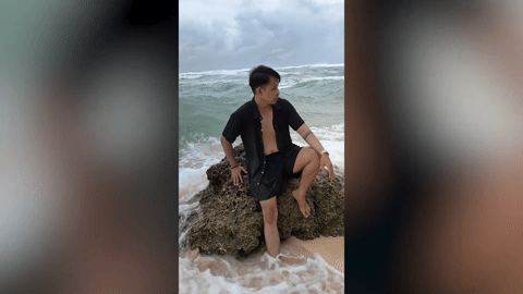 Tạo dáng thần thái bên bờ biển, du khách bị sóng đánh ngã sấp mặt