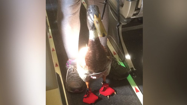 Vịt đi giày, đeo tã lên máy bay khiến hành khách 'phát rồ' vì thích