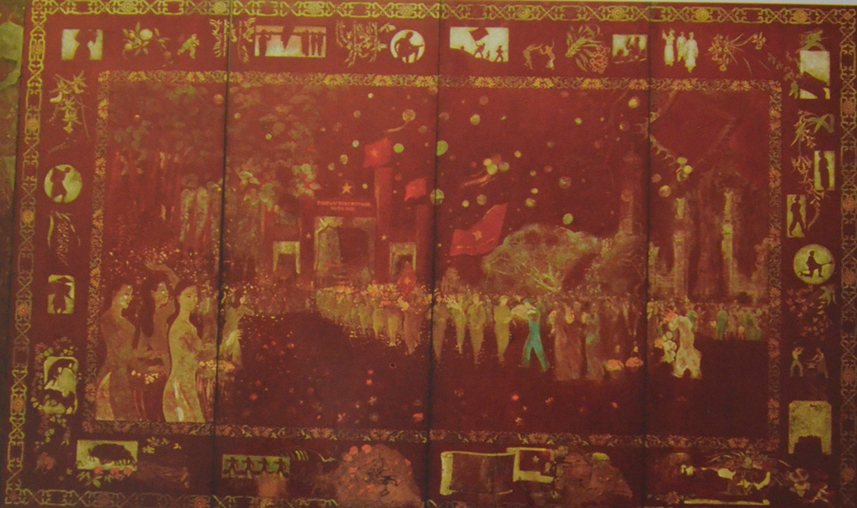 Đây là bức tranh lịch sử duy nhất của Trịnh Hữu Ngọc. Bức tranh đặc biệt vì mặt trước là bức sơn mài của Lê Phổ - điển hình của Mỹ thuật Đông Dương, mặt sau của Trịnh Hữu Ngọc - bức sơn khắc có phong cách và kỹ thuật độc đáo.