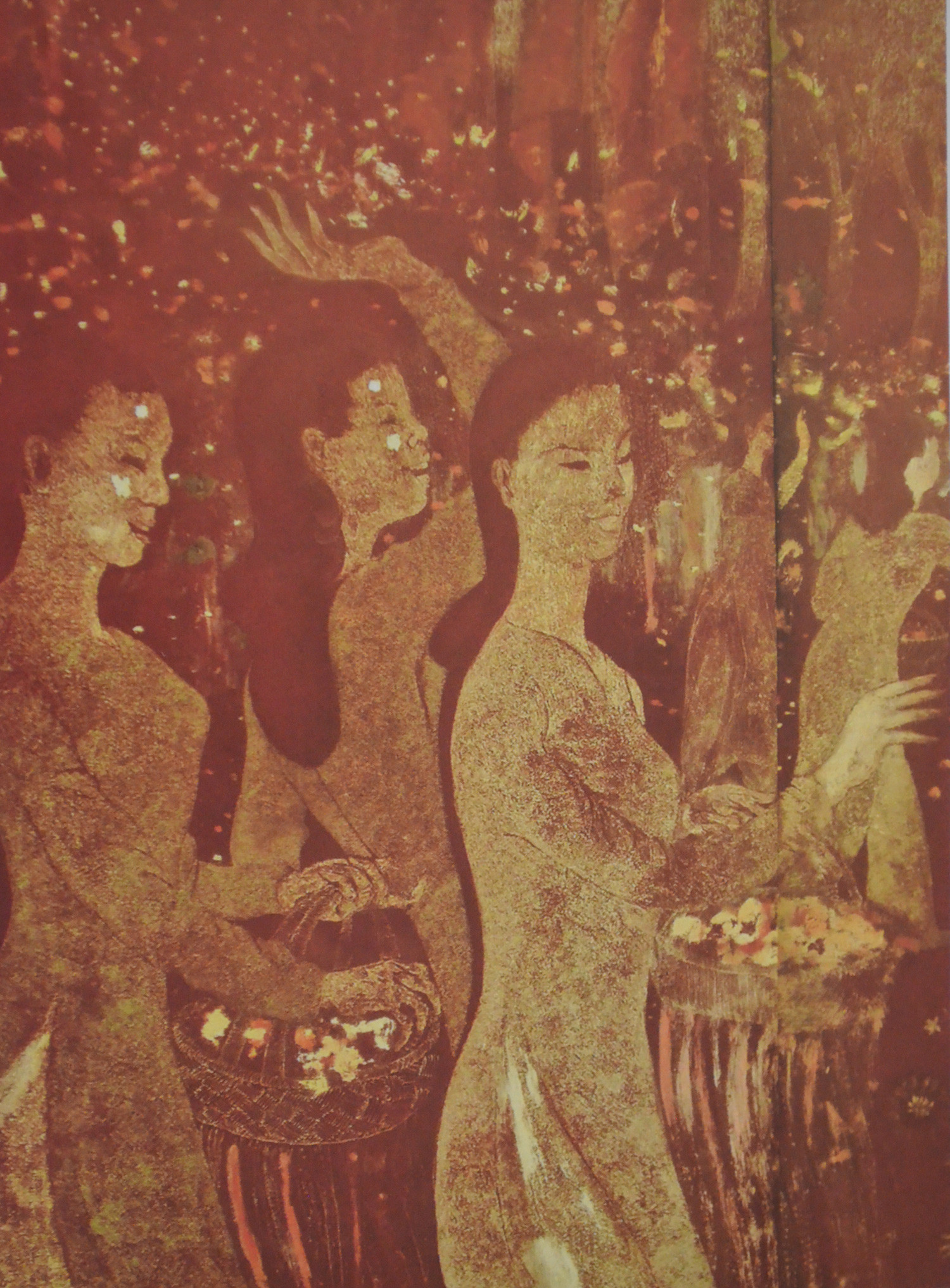 "Năm 2011, chúng tôi thu hồi được bộ tranh thì màu sắc đã phai nhạt gần hết. Phần đáy tranh bị mối xông rỗng ruột và phá ra cả mặt sơn. Vậy mà nó vẫn giữ được vẻ sinh động nồng nhiệt, trang trọng mà thanh tao, duyên dáng.