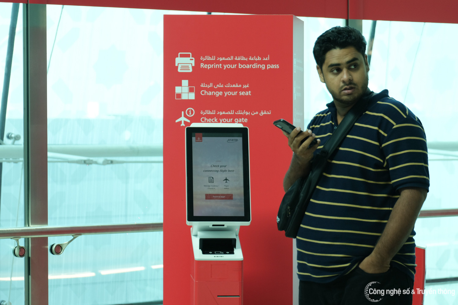 Tại sân bay quốc tế Dubai cũng bố trí nhiều hệ thống máy thông tin tự động để hành khách tự phục vụ. Với hệ thống này, hành khách có thể tự kiểm tra tình trạng chuyến bay, in lại vé nếu chẳng may đánh mất.