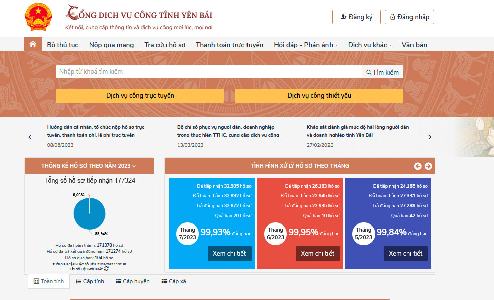 Thực hiện xây dựng, phát triển chính quyền điện tử hướng tới chính quyền số, đến nay, tỷ lệ dịch vụ công đủ điều kiện mức độ 4 được cung cấp trên Cổng dịch vụ công trực tuyến của tỉnh là 100%; tỷ lệ hồ sơ trực tuyến của dịch vụ công trực tuyến mức độ 3, 4 trên tổng số hồ sơ đạt 70%; toàn bộ hoạt động chỉ đạo, điều hành và quản trị nội bộ của cơ quan Nhà nước được thực hiện trên nền tảng quản trị tổng thể, thống nhất; 20% hoạt động giám sát, kiểm tra của cơ quan quản lý được thực hiện thông qua môi trường số và hệ thống thông tin của cơ quan quản lý.