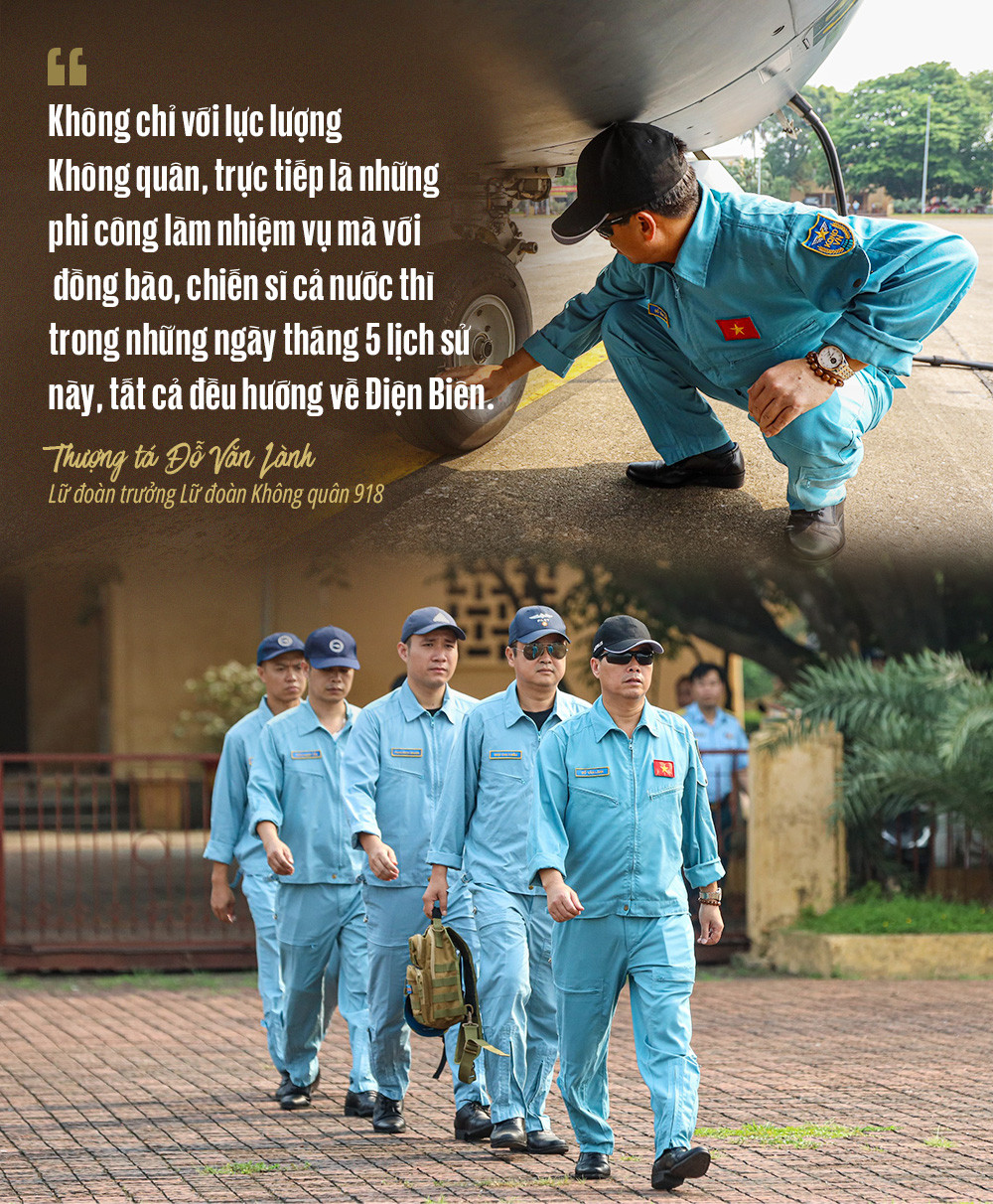 "Không chỉ với lực lượng Không quân, trực tiếp là những phi công làm nhiệm vụ mà với đồng bào, chiến sĩ cả nước thì trong những ngày tháng 5 lịch sử này, tất cả đều hướng về Điện Biên", vị Lữ đoàn trưởng chia sẻ.