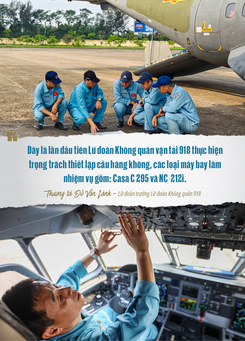 Đây là lần đầu tiên Lữ đoàn Không quân vận tải 918 thực hiện trọng trách thiết lập cầu hàng không, các loại máy bay làm nhiệm vụ gồm: Casa C 295 và NC-212i.