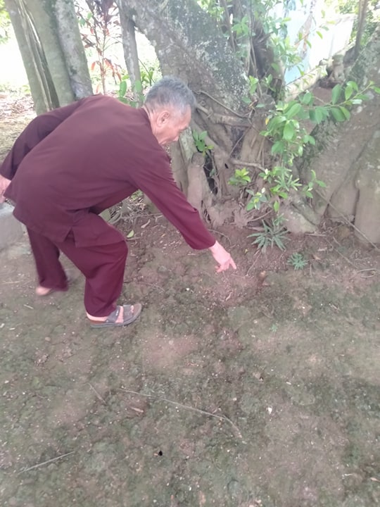 “6 năm trước tôi từ nhà con trai tới đền thì hốt hoảng phát hiện dưới gốc đa có con rắn hổ mang to, dài khoảng hơn 2m nằm im lìm trên nền đất.