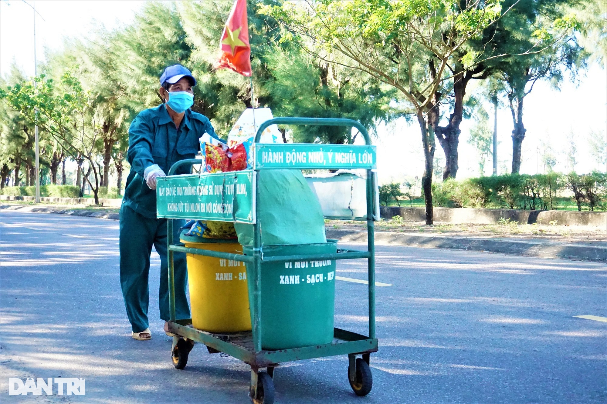 6h sáng, lẳng lặng trong màn sương sớm là bóng dáng của một người đàn ông gầy gò cùng chiếc xe đẩy đi về phía bờ biển Cửa Đại, vừa đẩy xe, ông vừa nhặt từng mảnh rác bên đường. Ông là Nguyễn Thương (sinh năm 1960, trú phường Cửa Đại, TP Hội An).