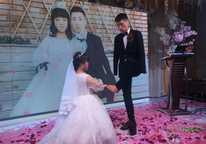 Đám cưới của cặp đôi chú rể Zhang Gang không tay, cao 1,8m với cô dâu Peng Yu chỉ cao 1,1m được tổ chức vào ngày 16/2 năm ngoái ở Hạc Cương (tỉnh Hắc Long Giang, Trung Quốc) mới đây lại nhận được sự chú ý của cộng đồng mạng.