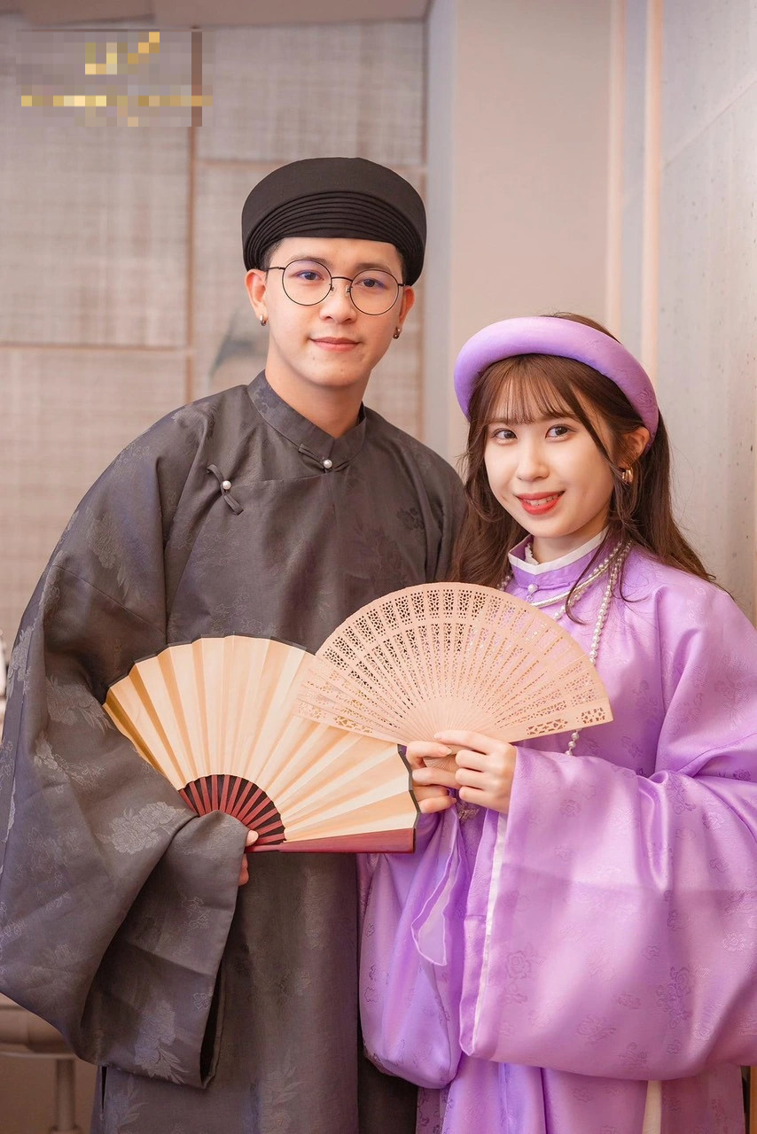 Cặp đôi trong trang phục truyền thống của Việt Nam và Nhật Bản. (Ảnh: C. Đ).