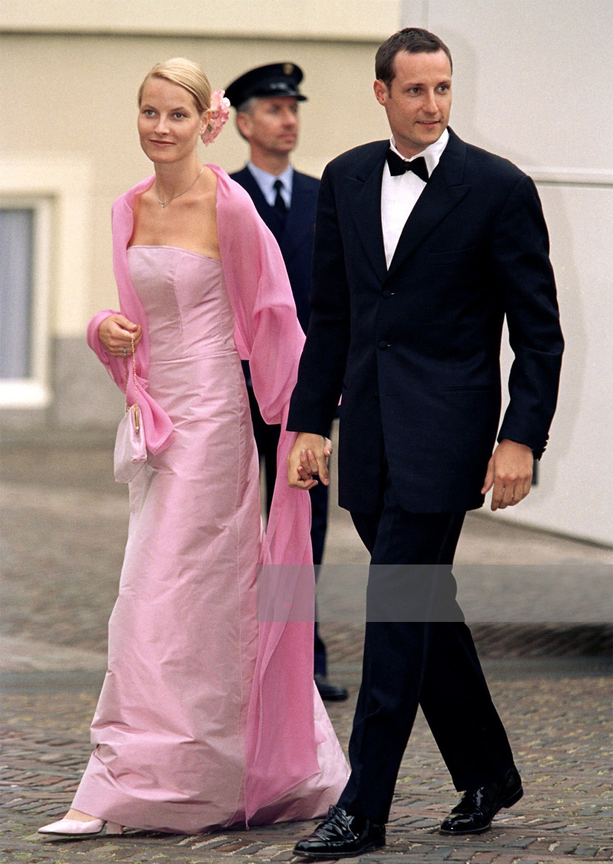 Vào ngày hôn lễ, Mette-Marit diện một chiếc váy trắng thanh lịch do Ove Harder Finseth thiết kế, đội vương miện hoa cúc và cầm một bó hoa xếp thành dải dài. Con trai riêng của cô - Marius, 4 tuổi đảm nhiệm vai trò thị đồng cho mẹ trong đám cưới. Trước sự chứng kiến của đông đảo mọi người, cô dâu đã khóc vì hạnh phúc trong suốt buổi lễ kéo dài một giờ.