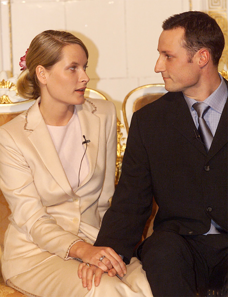 Lần xuất hiện chính thức đầu tiên của Mette-Marit với tư cách hôn thê của Thái tử là tại lễ trao giải Nobel Hòa bình ở tòa thị chính Oslo vào ngày 10/12/2000, sau thông báo về lễ đính hôn của cặp đôi vào ngày 1/12. Tại buổi họp báo, Thái tử Haakon nói đã ở bên Mette-Marit khoảng 1 năm. Thái tử đã trao cho “người thương” chiếc nhẫn đính hôn mà ông nội - Vua Olav V và cha mình - Vua Harald V từng trao cho vị hôn thê của họ.
