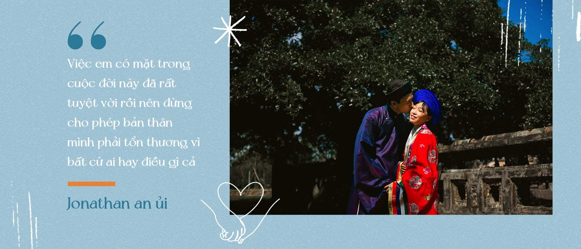 Jonathan đã chứng minh điều đó bằng việc dù thấy hoàn cảnh gia đình mình ở quê nhà, thấy bản thân mình không hoàn hảo nhưng vẫn muốn ở bên mình thay vì lựa chọn những thứ khác tốt đẹp hơn. Chính điều đó làm cho mình cảm thấy bản thân đã chọn đúng người", chị Vân chia sẻ động lực tiến tới hôn nhân với bạn trai ngoại quốc.