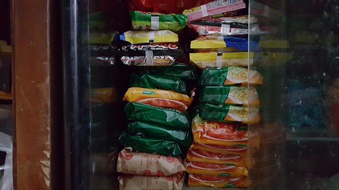 | Mỗi ngày ông Dũng chỉ dám ăn 1 gói mì tôm, tằn tiện lấy tiền mua thuốc cho vợ. Ảnh: Nhật Linh |