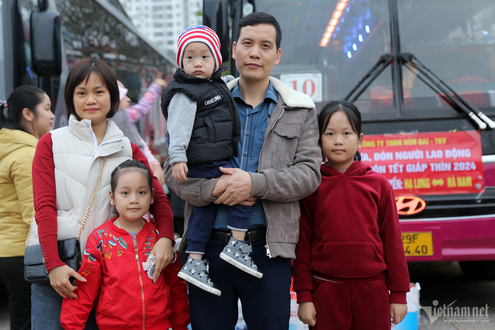 Đã nhiều năm đi "chuyến xe 0 đồng", anh Đàm Mạnh Quảng (SN 1988, làm việc tại phân xưởng Cơ điện vận tải, Công ty than Hòn Gai - TKV) cho biết những chuyến xe như này rất thuận tiện cho anh và gia đình vì thời điểm cận Tết Nguyên đán rất khó để mua vé xe.