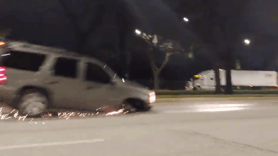 Tài xế lái SUV mất bánh trước cày mặt đường tóe lửa gây sốc
