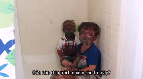 Với cách "chối tội" dễ thương của hai quý tử, ông bố trong clip cũng phải bật cười.