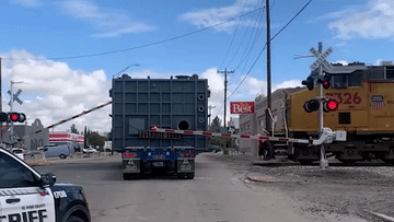 Tàu hoả tốc độ hơn 80km/h đâm thẳng vào chiếc xe đầu kéo mắc kẹt giữa đường ray, thùng container nặng 23 tấn bay như hộp đồ chơi.