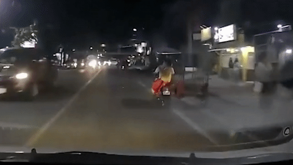 Cậu bé đã may mắn thoát nạn sau khi bị ngã khỏi xe máy xuống đường ngay trước đầu một chiếc ô tô đang lao tới.