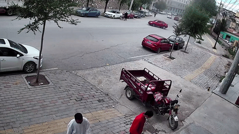 Người tài xế đã không ngần ngại mở cửa ô tô lao ra ngoài chặn chiếc xe 3 bánh không người lái chở theo một em bé.