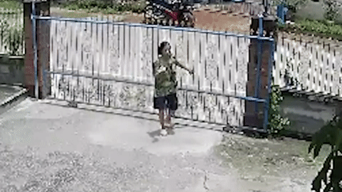 Cánh cổng sắt bất ngờ đổ sập xuống người một phụ nữ sau khi người này kéo cửa đóng lại nhưng không để ý.