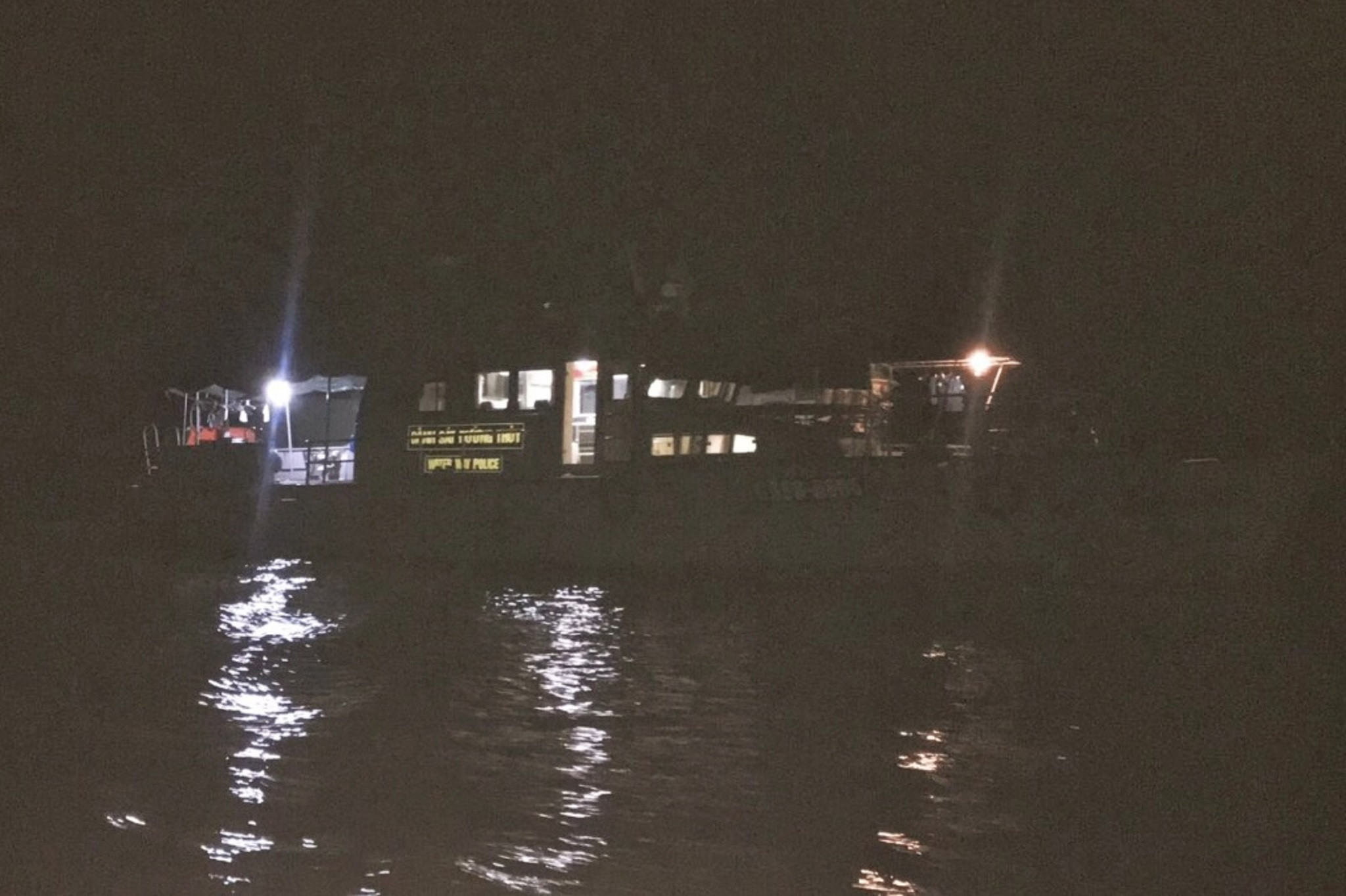 Các cán bộ, chiến sĩ Cảnh sát đường thủy được chia thành 2 tổ, sử dụng 3 tàu cỡ lớn tìm kiếm máy bay trực thăng rơi và người gặp nạn trên vùng đảo Hòn Nét, giáp ranh giữa vịnh Hạ Long (Quảng Ninh) và vịnh Lan Hạ (Hải Phòng).