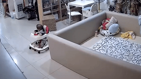 Khoảnh khắc đáng sợ em bé mắc kẹt lơ lửng ngoài ban công chung cư