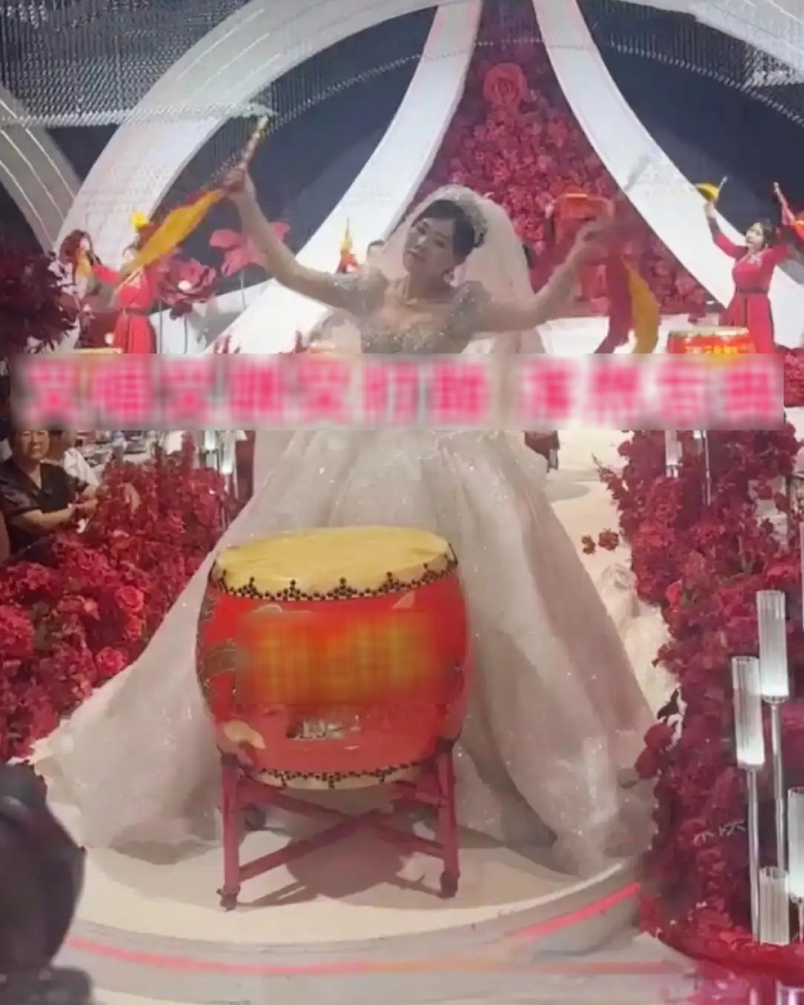 Vào ngày tổ chức hôn lễ, cô dâu diện váy cưới, kéo theo 7-8 cô gái trẻ lên sân khấu nhảy nhót. Điệu nhảy của cô bị nhận xét là cứng nhắc, thiếu chuyên nghiệp nhưng cô tỏ ra rất tự tin, tự coi mình là “ngôi sao sân khấu”, thông tin từ Sohu.