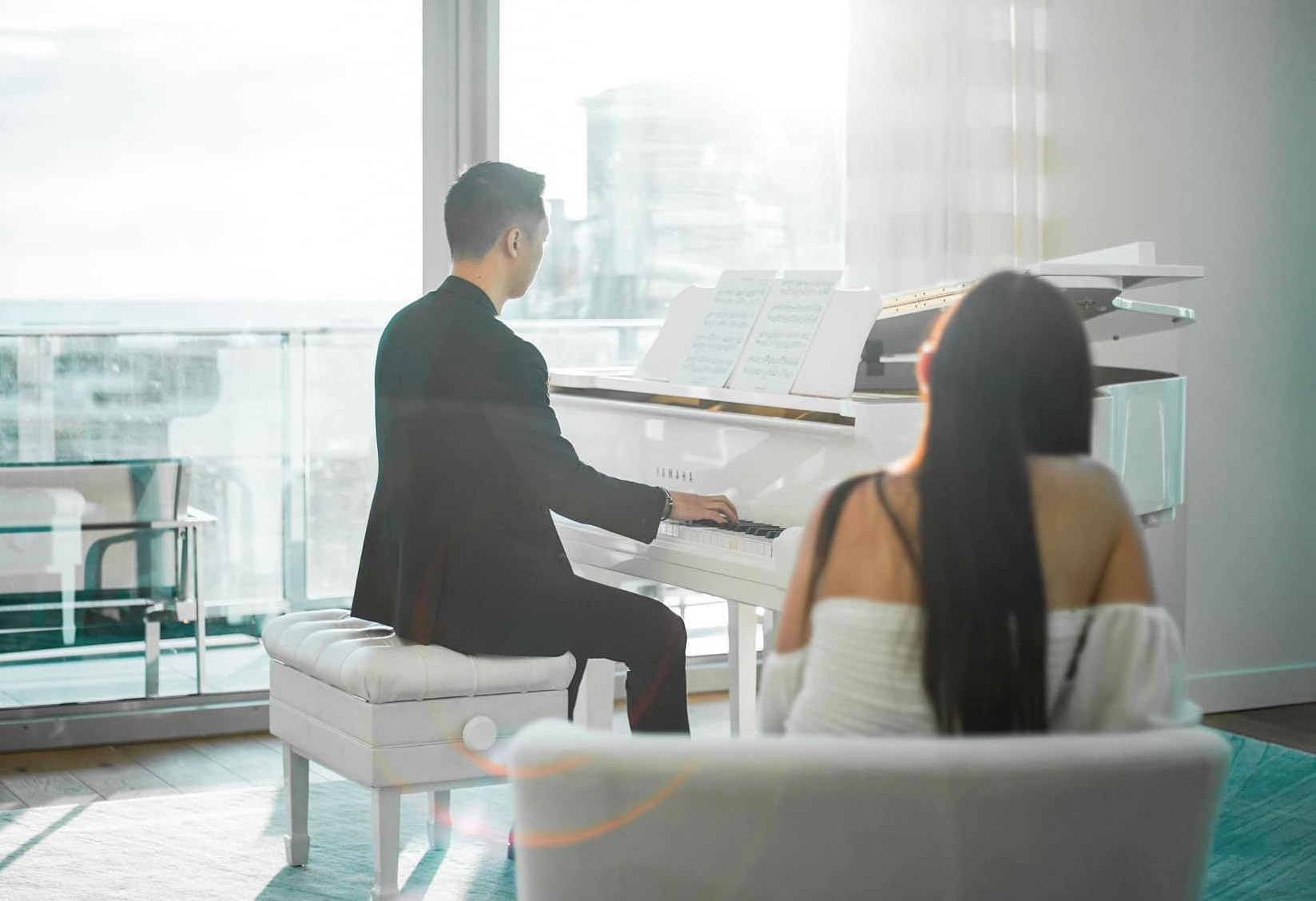 Samuel Lam cho biết, anh từng nghe Nhi chia sẻ, cô rất thích đàn ông chơi piano. Đó là lí do anh ấy quyết tâm tập chơi lại piano. Anh thường chơi vào sáng sớm hoặc khi Nhi vắng nhà.