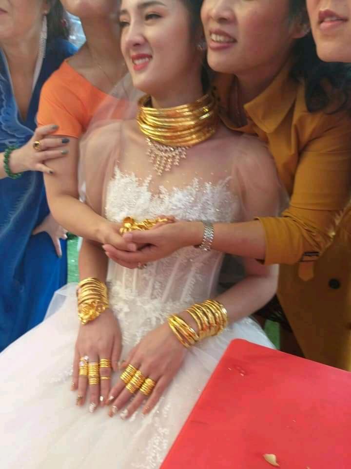 Mới đây, trên mạng xuất hiện một hình ảnh đám cưới ở Cao Bằng tiếp tục gây xôn xao. Hàng loạt các hội nhóm, diễn đàn chia sẻ những bức ảnh này với lượng người theo dõi bài viết lên tới vài chục nghìn người. Bên cạnh vẻ ngoài xinh đẹp của cô dâu, điểm đáng chú ý là cô dâu đeo trĩu vàng trên người. Vòng cổ nhiều tới mức sắp che kín cổ cô dâu. Tương tự nhẫn hay vòng tay cũng “dày đặc”. Chú rể cũng “gánh vác trọng trách này” cùng với vợ khi đeo gần kín hai bàn tay nhẫn, đeo cả vòng cổ giúp cho vợ…